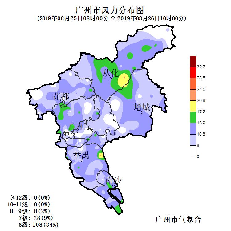 此次過程中,白云直接發布暴雨橙色預警信號,其余各區都發布了暴雨黃色預警信號,其中黃埔、花都、增城將暴雨黃色升級為暴雨橙色預警信號,除了從化、白云、黃埔以外各區都發布了雷雨大風黃色預警信號。