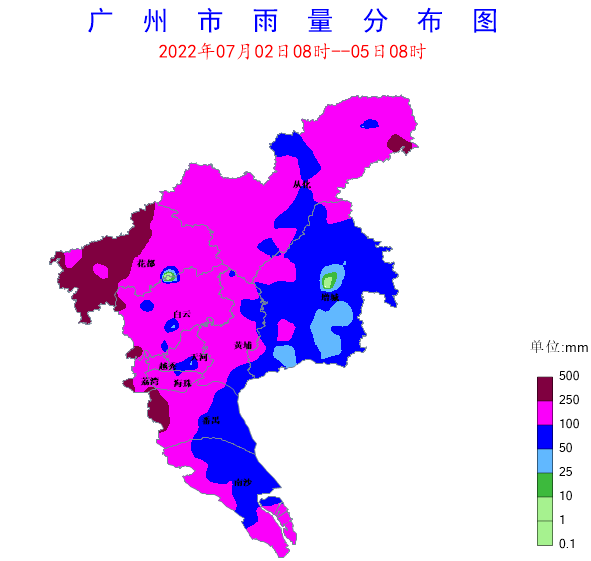 圖1 2日08時至5日08時廣州市雨量分布圖