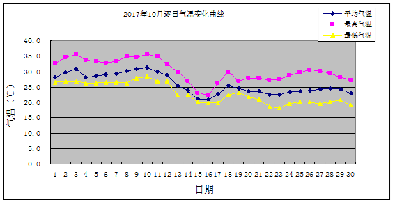 上旬受副熱帶高壓控制,平均氣溫較常年偏高3.6℃,3日和10日出現(xiàn)高溫天氣,相繼刷新了我區(qū)有氣象記錄以來(lái)的最晚記錄。