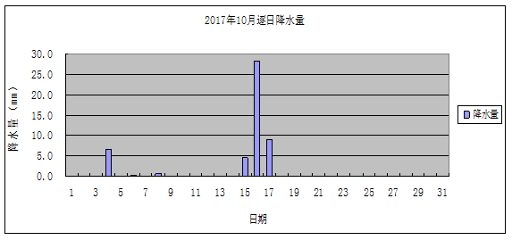 月總降雨量49.3毫米,與累年平均值比偏少2成。其中,上旬降雨量與累年平均值比偏少近8成,中旬降雨量是累年平均值的2.4倍,下旬沒有錄得降雨,日最大降雨量28.4毫米,出現(xiàn)在16日。