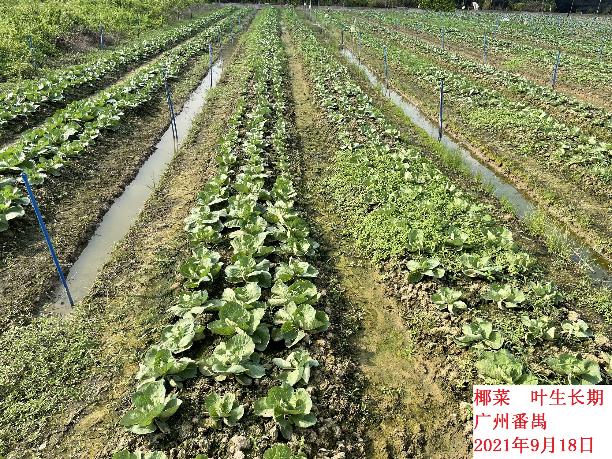 本旬我區蔬菜類作物生長狀況一般,水瓜處于開花座果期,南瓜處于莖蔓生長期,椰菜處于葉生長期。