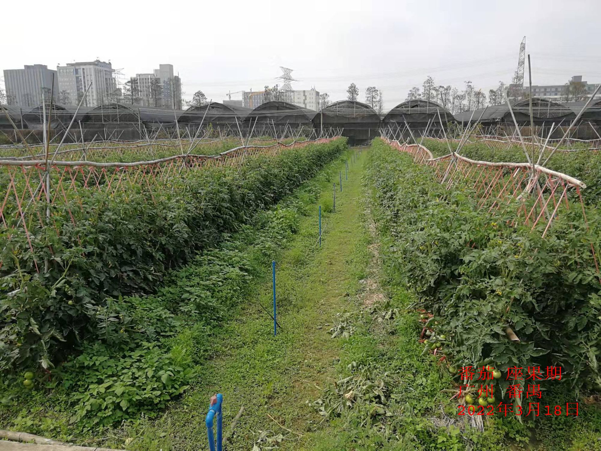 本旬我區(qū)蔬菜類作物生長狀況良好,番茄處于座果期、四季豆處于葉開花期、椰菜處于包心期。